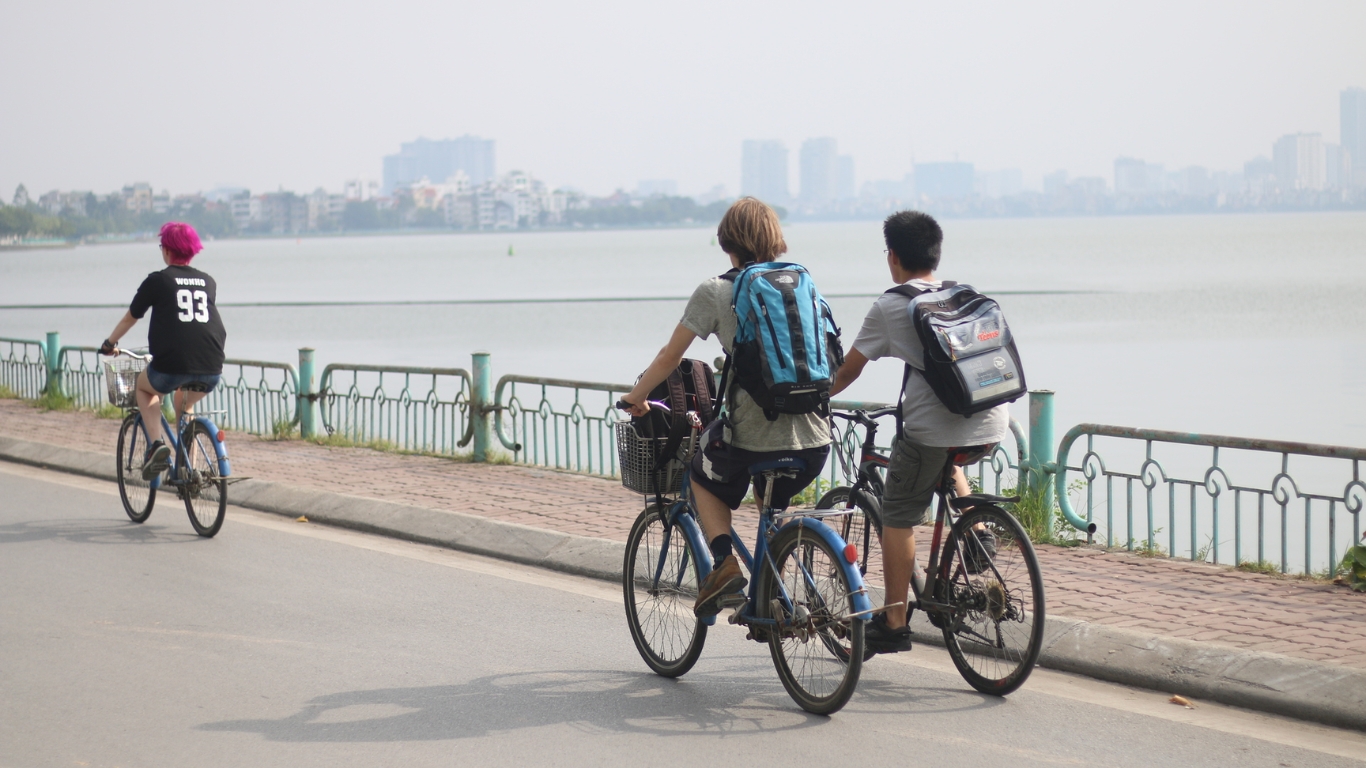 Biking in Hanoi is not physically demanding. The reason is simply because Hanoi is located in a delta zone, which means that it is flat. It does not have many hills, or ups and downs. As a result, if you just want to bike and enjoy life, not really desire to work out, cycling is a perfect choice.