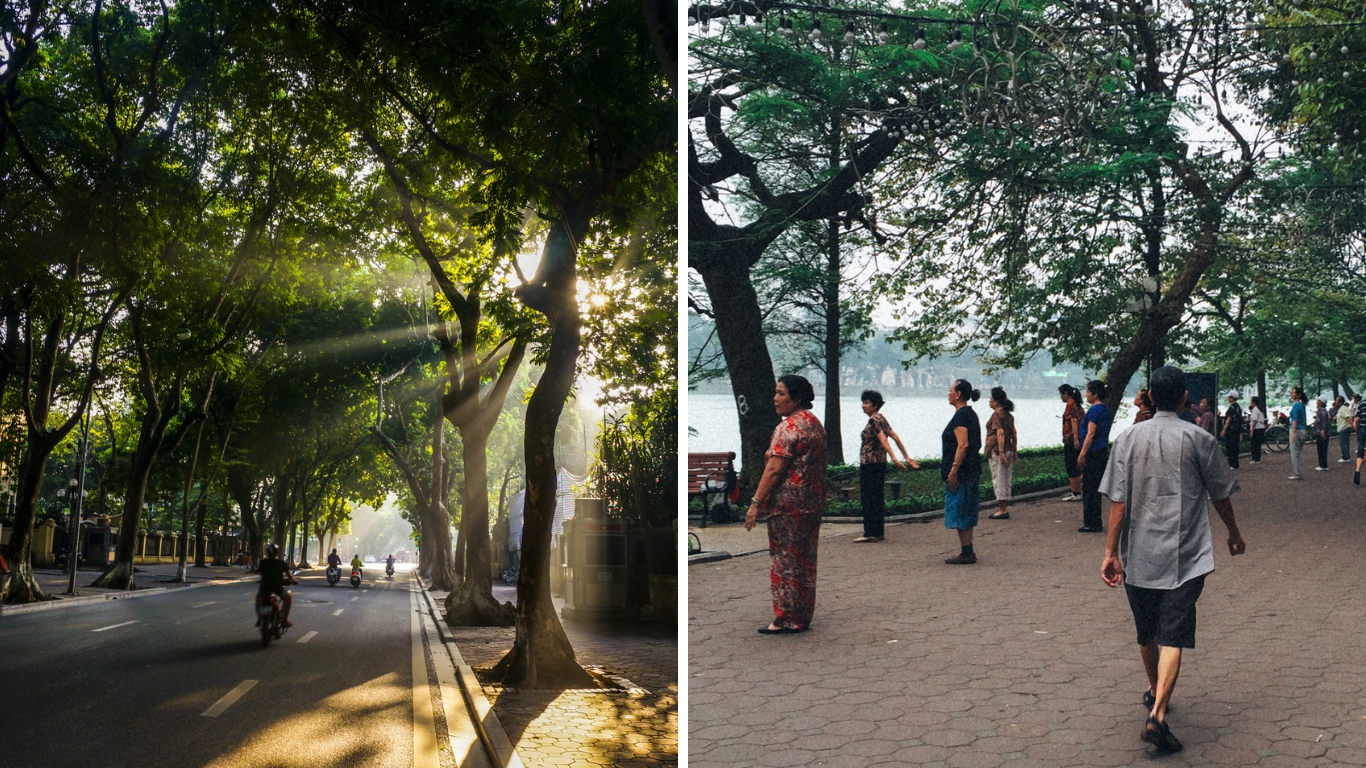 But the beauty of Phan Dinh Phung Street isn’t just in its physical appearance. As you ride, you’ll witness some delightfully quirky scenes that are quintessentially Hanoian. Can you guess what they are? They are the images portraying many people doing exercise.