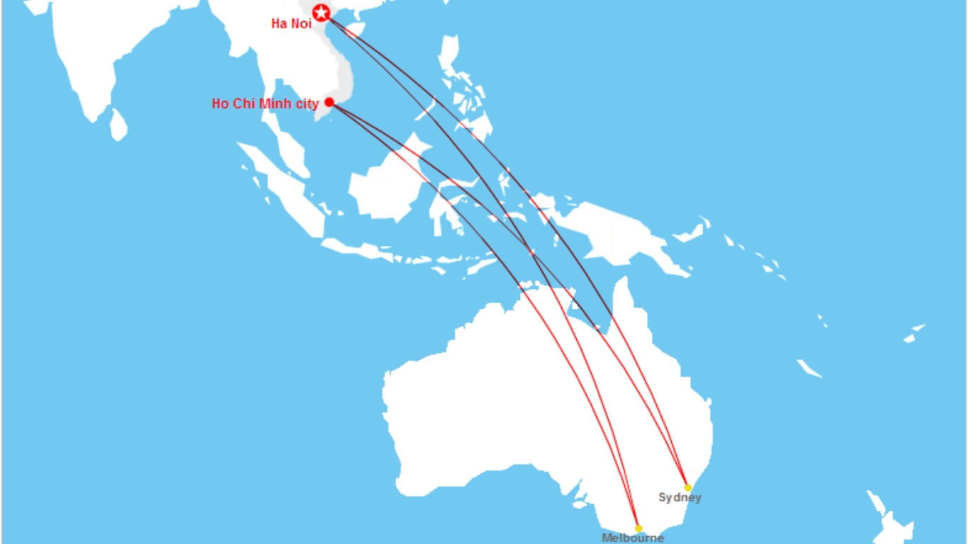 Australia’s major international airports, such as Sydney, Melbourne, Brisbane, and Perth, all have direct flights to Vietnam’s primary airports in Hanoi and Ho Chi Minh City (also known as Saigon). The flight time from the east coast of Australia to Vietnam is approximately 8-9 hours, with the shortest route being from Melbourne to Ho Chi Minh City, which takes around 8 hours and 35 minutes.