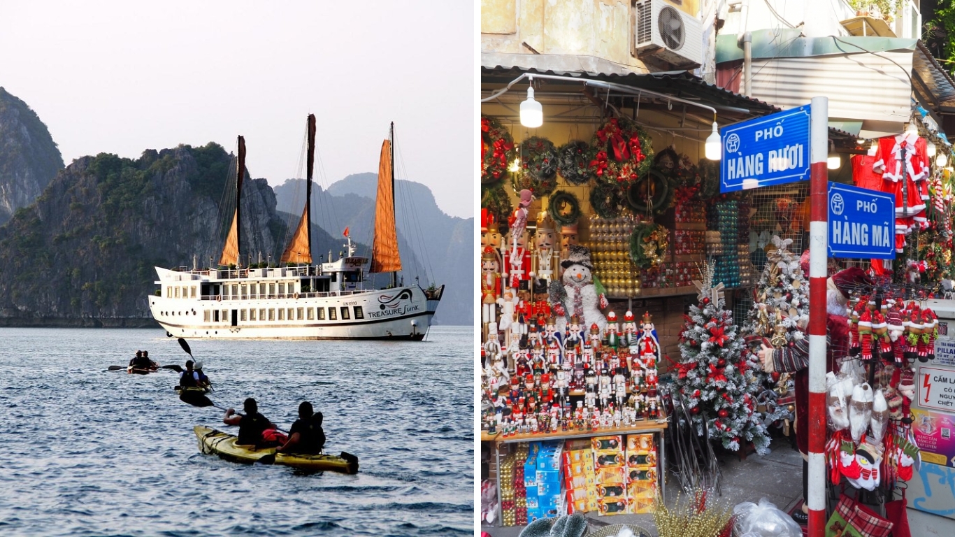 Hanoi – In December, Hanoi experiences a pleasant and slightly cooler climate, perfect for exploring its vibrant street markets, enjoying local cuisine, and visiting historical sites like the Temple of Literature and Hoan Kiem Lake. Don’t forget to stroll around Hang Ma Street to immerse in the vibrant Christmas vibe are covering on Hanoi at this time.