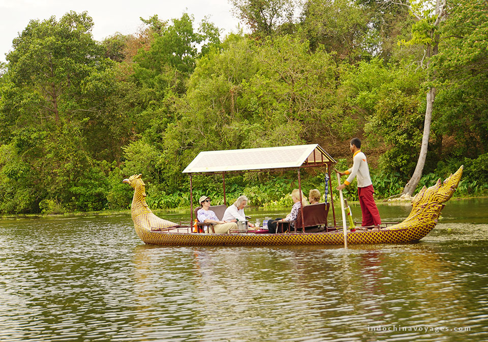 Drive along the picturesque Sangker River to Wat Slaket Pagoda, the residence of the former provincial Buddhist patriarch. Continue to visit Wat Ek Phnom. Visit a market where Prahoc, the Cambodian fish paste, is made.