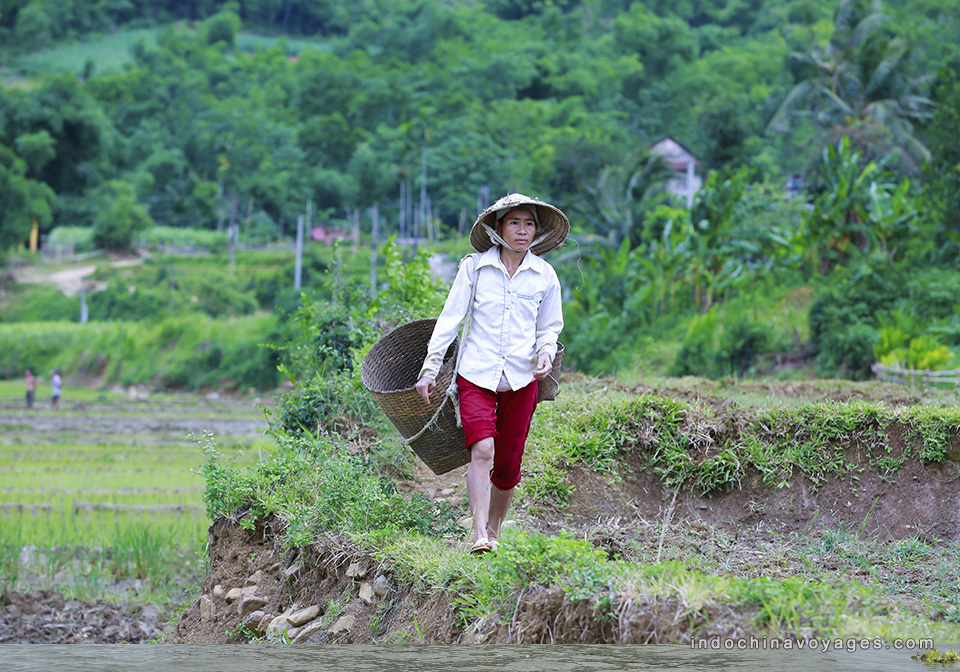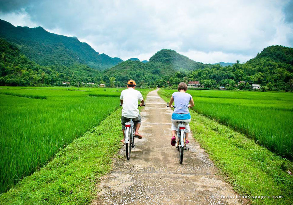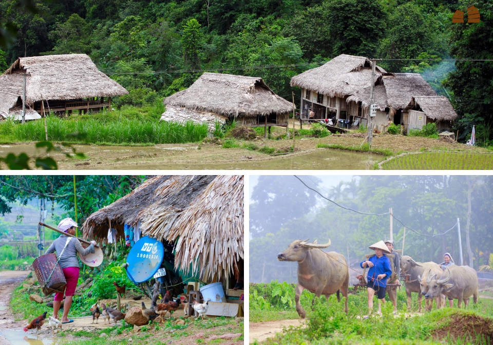 Arrive in Mai Chau at noon, where you’ll be welcomed with lunch at a traditional local house, offering an authentic taste of the region’s cuisine. After your meal, begin an immersive trek through cascading terraced rice paddies and charming small villages, discovering the natural beauty of this pristine valley while encountering the rich culture of the ethnic Thai people. Visit the picturesque villages of Pom Coong and Na Phon, where you’ll have the opportunity to observe traditional stilt houses and interact with friendly local families.