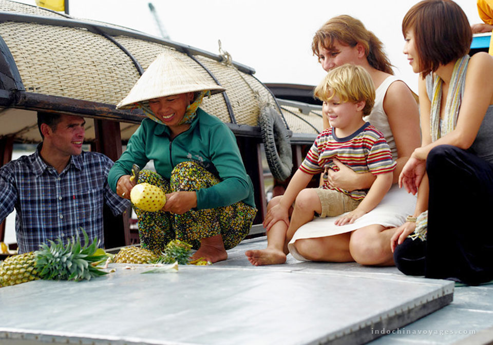 For those who want, early wake up to attend the alms-giving procession in the streets of the town at 5: 30 am and then pursue with a visit of the fresh market before breakfast at your hotel. Option: French breakfast at Café Wat Sene or Le Banneton Bakery. Around 8:30 am, we drive to Xieng Lom Village and start our elephant daycare full-day tour: “Inside the hearts of elephants”