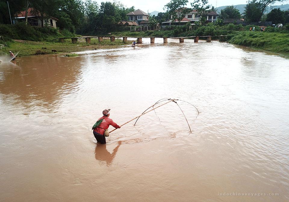 For those who want, early wake up to attend the alms giving procession in the streets of the town at 5: 30 am and then pursue with a visit of the fresh market before breakfast at your hotel. Option: French breakfast at Café Wat Sene or Le Banneton Bakery. Around 8:30 am, we drive to Xieng Lom Village and start our elephant day care full day tour: “Inside the hearts of elephants”