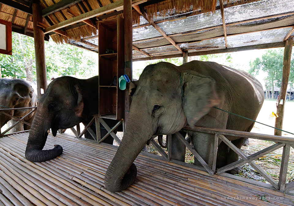 Upon arrival you are invited to have coffee or tea as your guide for the day provides an in-depth introduction to elephant behavior and the ways we should interact with them. A quick boat ride across the Nam Khan River will deliver you to the waiting elephants. You will be introduced to your new friends and feed them some special treats—a sure way to begin an instant friendship. Then, you will enjoy observing elephants from the river bank as Mahouts wash them in the Nam Khan river. You can experience elephants washing, swimming and playing in the water. Please note this is voluntary activity for the elephant’s and Mandalao does not force them to get in the water. (On cold days the elephants are less likely to want to get wet.) After 2 hours crossing through a beautiful stretch of traditional Lao gardens you will arrive at the jungle-covered Huay Nok stream. As you walk alongside the elephants and crisscross through the cool water you will experience a profound sense of understanding, respect, and caring for these amazing animals. You and your elephant companions will continue walking past a lovely stretch of rice fields and enter a patch of forest where you can rest, relax, and eat. Lunch will be served in traditional Lao fashion, eating on bamboo mats on the forest floor. Then, you will visit Tad Kuang Song Waterfall, which was named after a Golden Deer spirit seen standing on its crest many centuries ago. If you like, you can take a cool dip, wade, stand under the soft showers of the waterfall, and spend time meditating and admiring the private beauty of this rarely seen natural treasure. You will sit, watch, and learn as the MandaLao mahout’s show how they communicate and listen to their elephants. This will highlight the special skills each elephant has and give you deeper insight into their individual personalities. After this, you can take what you have learned from the mahouts and guides throughout the day and spend quiet, uninterrupted time with the elephants—reading their emotions just as they read yours. You will experience first-hand why humans and elephants have shared such an unwavering bond for thousands of years. Along with the mahouts, you will bring your elephants to their nighttime feeding grounds. Take time for a long goodbye and in knowing that the connection you have built is not only felt by you, but by your new friend as well. Enjoy a few moments to think about your experiences from the day as you look out at the vast Luang Prabang mountain range from the terrace at MandaLao. We will then drive you back to town. Arrive at your hotel at approximately 4:00pm. Dinner at Tangor Bar & Restaurant. Overnight in Luang Prabang