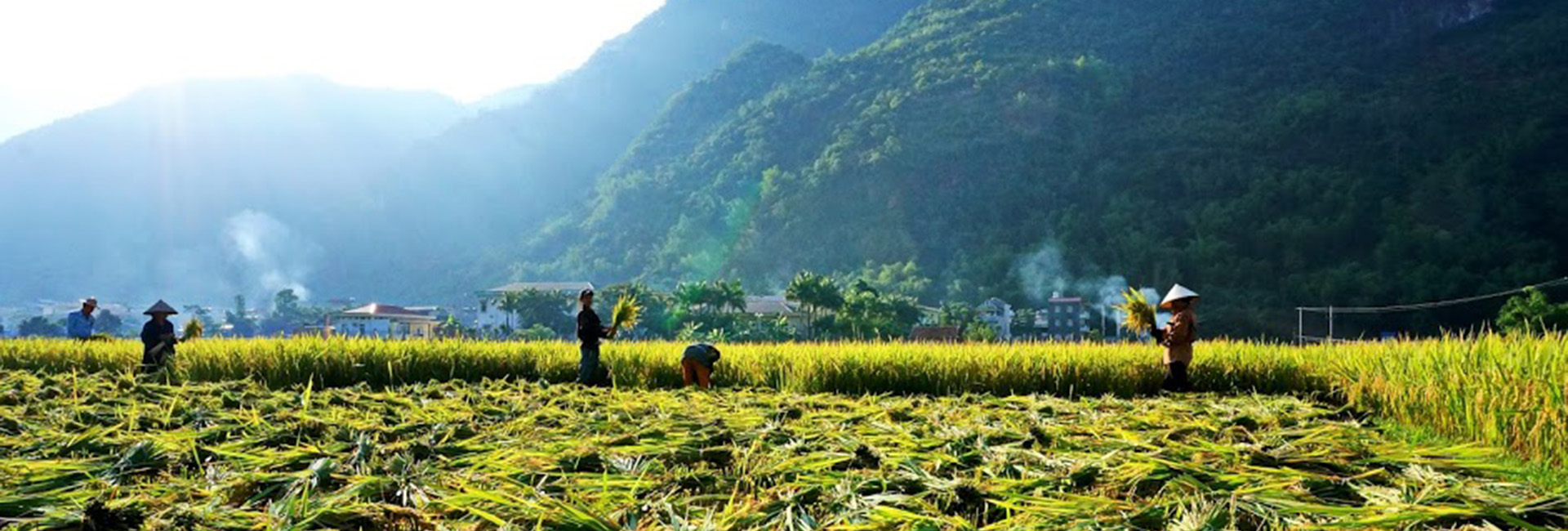 Arrive to Mai Chau at noon, we will have lunch at a local house and then we start to trek through terraced rice paddies and small villages, discovering the natural beauty of the valley and encountering the culture of the ethnic minority Thai people on our visits to the “Pom Coong” and “Na Phon” villages.
