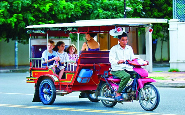 If you have traveled to Cambodia, it is easy to recognize that on streets of Phnom Penh, there is almost no shadow of popular public means of transport like bus or taxi. Instead, travellers will see Tuk Tuks constantly moving on the roads. Tuk Tuk is the most common vehicle in Phnom Penh so that I can say it is even more popular than Xe Om in Vietnam. Usually, a tuk tuk can carry from 4 to 6 people and the tuk tuk drivers in Cambodia can communicate pretty well in English. There is one thing you should know, tuk tuk drivers in Cambodia often offer 5 USD price regardless the length of your journey. Travellers can freely bargain and most of the drivers are willing to accept 1 USD for 1 km distance. The important thing is you need to locate your journey to be able to save money because sometimes, you might become a “navigator” for the local drivers as many tuk tuk drivers in Cambodia do not know the way well, especially in areas outside the city center. It is quite easy to understand because streets in Phnom Penh are numbered in an arbitrary order. Tours in Cambodia