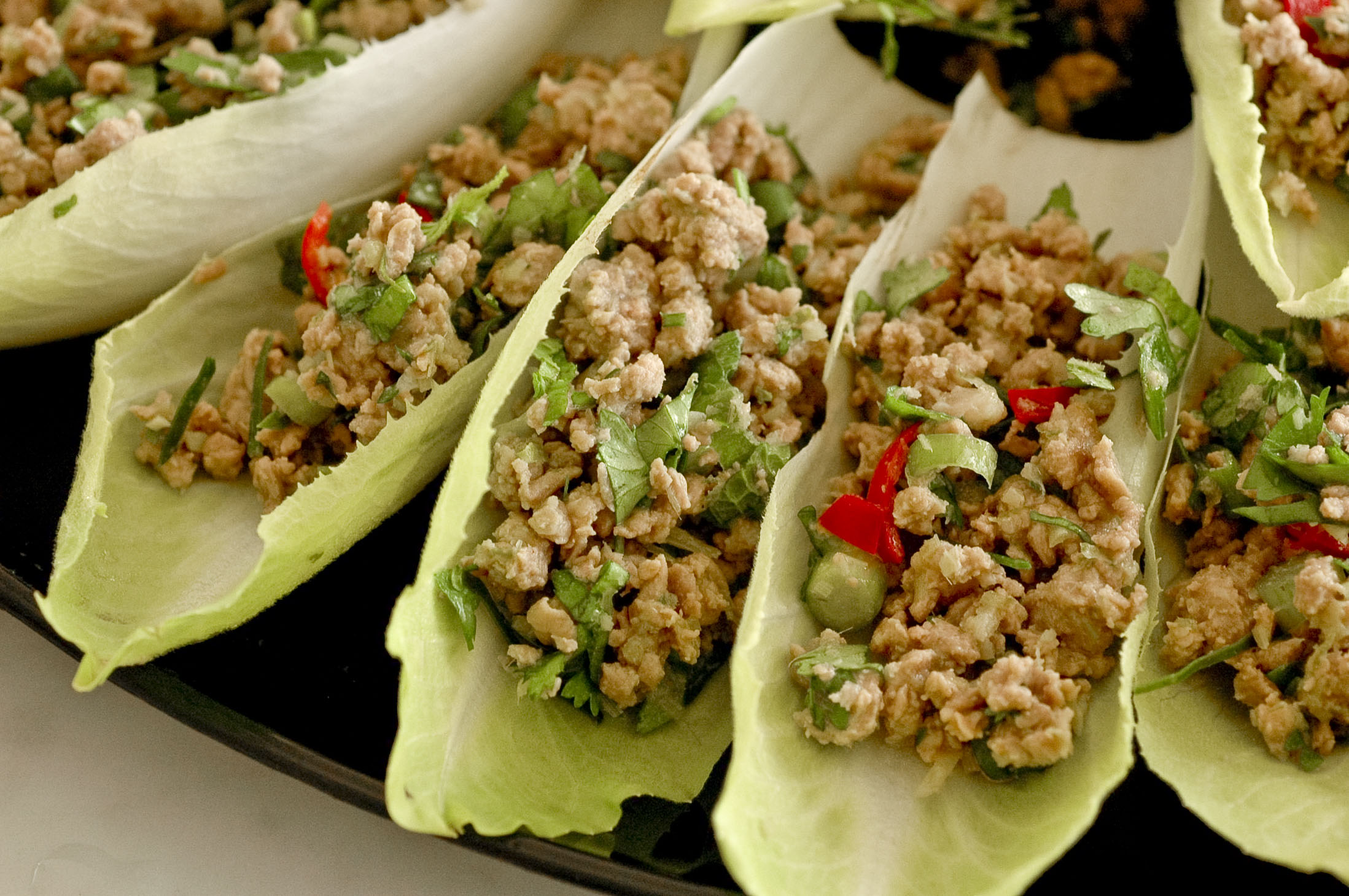 Laos people often cook Laos dishes with fresh ingredients such as vegetables, freshwater fish, duck, beef, pork, and chicken. Spicing is tangy, using lemongrass, chili, ginger, tamarind, coriander, lemon juice, and aromatic herbs, etc. A common Laos dish is larb, made of minced meat, chicken, fish, or vegetables tossed with garlic, chili, green onions, and lime juice.