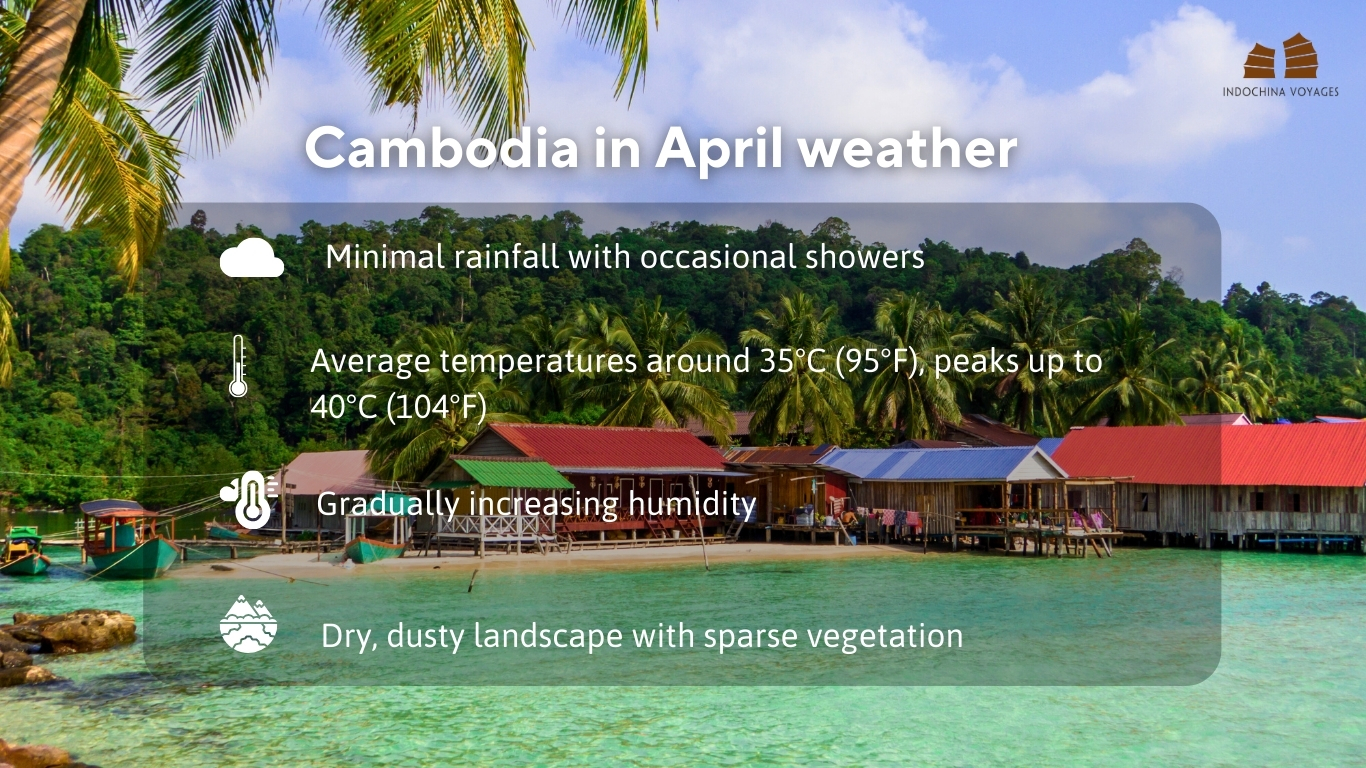 - April is one of the hottest months in Cambodia, with temperatures often exceeding 35°C (95°F). This can be uncomfortable, especially for those unaccustomed to heat.
