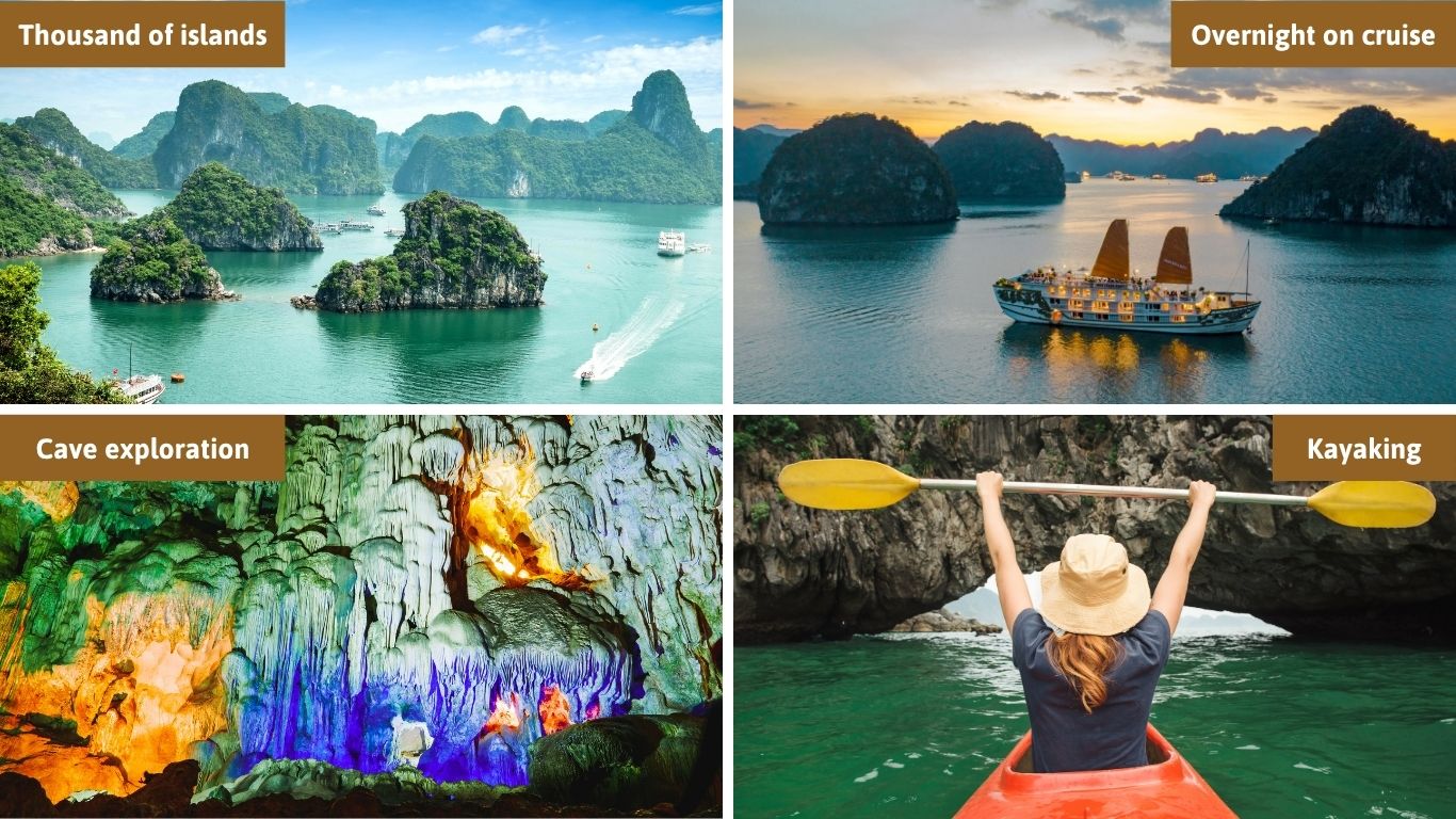 Halong Bay for relaxation and luxury cruises: Ideal for those seeking structured relaxation with natural beauty. Experience includes: