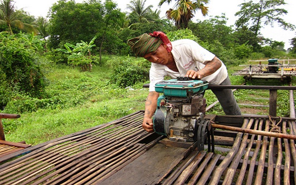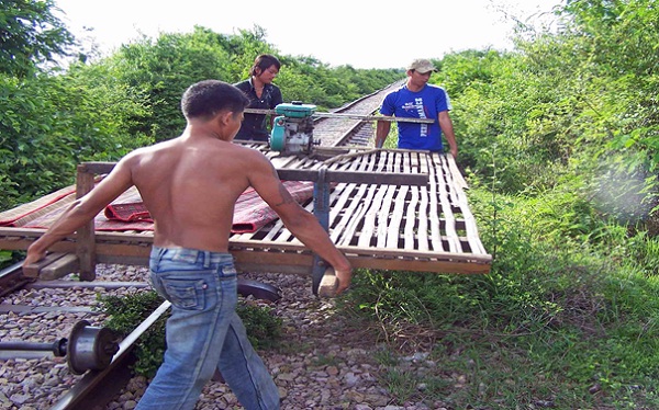As there is only one track but there are almost 50 bamboo trains in Battambang so you might see two trains encounter each other. In this situation, the solution is very simple, the one that carrying less passengers will be carried out the track and then carried in again after the other one already moved