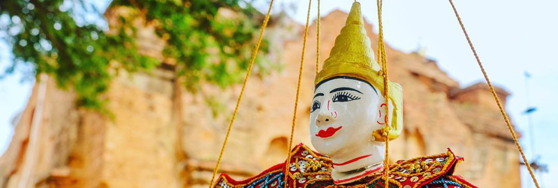 Just like many countries in Asia, puppets in Myanmar play an integral part in their culture. Here, puppets are known under other names: Marionettes or Yoke Thé. Marionettes, the string puppetry, has been the traditional form of puppet performance in Myanmar since the 15th century. Through these puppets, morals, victories, tales of wonder are told and passed from generation to generation.